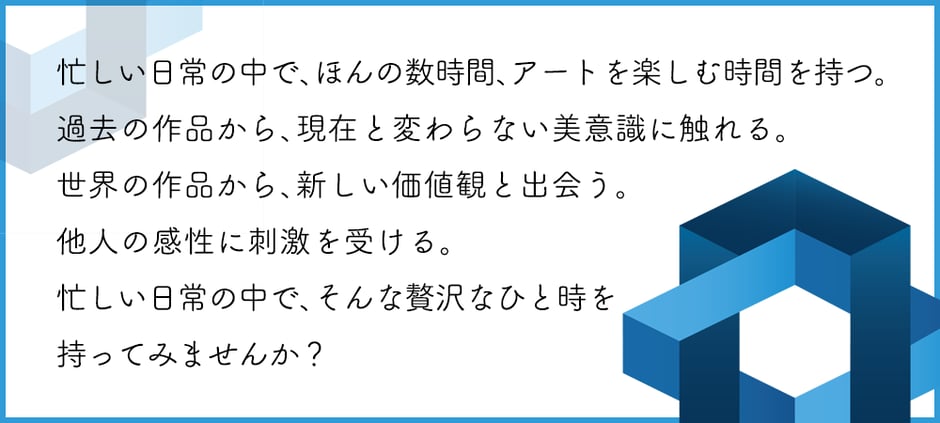 忙しい日常の中で、ほんの数時間、アートを楽しむ時間を持つ。